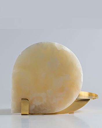 An unconventional marble and brass tray that raises the bar of typical service trays. The sublime White Onyx marble was carved to an interesting contour allowing the brass to flake off and form a refined tray. Perfect for a bouquet of flowers or sweets.